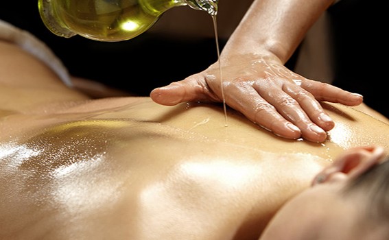 Masaje tradicional hindú realizado con aceites esenciales templados.